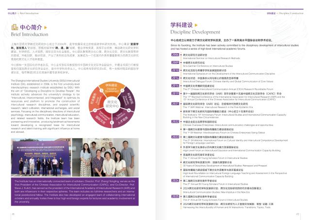 With a history that dates back to 2006, the SISU Intercultural Institute (SII) is one of research institutes early established at Shanghai International Studies University (SISU) with distictive international features. The institute has always upheld its value - Developing a Discipline to Develop People. Drawing on the university’s strengths in multi-language programs and multi-disciplinary resources, SII has integrated multi-disciplinary research in the cultivation of international-oriented talents, the development of intercultural communication (IC) reserach and international cooperation, and provided intercultural education, consulting, and training for schools, companies, and public institutions, forming a four in one development mode.