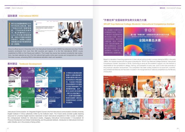 Standing in the forefront of intercultural research in China, SII has made remarkable achievements. It also has built a comprehensive curriculum for undergraduate, graduate, and doctoral students, and published a series of IC textbooks that provides an innovative approach to IC education. With pioneering research into IC, the institute has published Intercultural Research which focus on cutting-edge research on the intercultural field in a variety of areas and provided academic support for SFLEP Cup National College Students’ Intercultural Competence Contest (SNICC). And it’s MOOC course - “Intercultural Communication” - has been selected as one of the country’s first model MOOCs and won the first prize for Shanghai Teaching Achievement Award in 2018.
